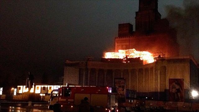 Ранее сообщалось, что загорелись строительные леса у главного павильона ВДНХ.