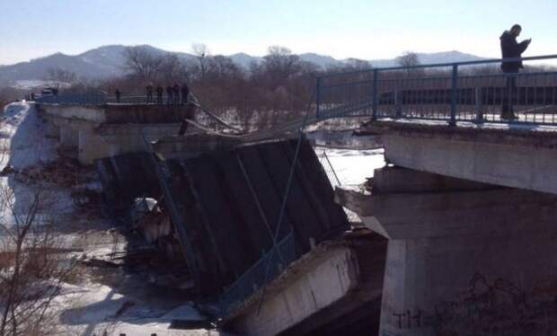 На трассе Владивосток–Находка обрушился мост. Инцидент произошел днем 23 февраля в районе поселка Новолитовск.