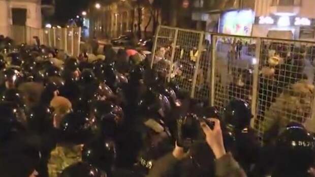 Ранее сторонники блокады Донбасса вступили в противостояние с полицией в центре Киева. После того, как силовики попытались оттеснить митингующих с улицы, те начали ломать ограждения.
