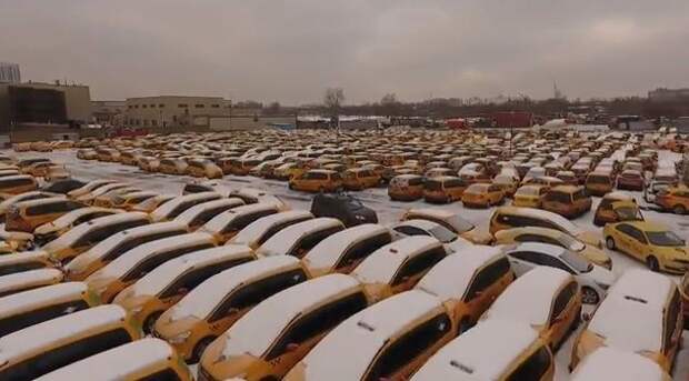 В Сети набирает популярность видеоролик, на котором показано столичное "кладбище такси". Это гигантская парковка, полностью уставленная автомобилями желтого цвета, которые больше не могут служить таксомоторной компании.