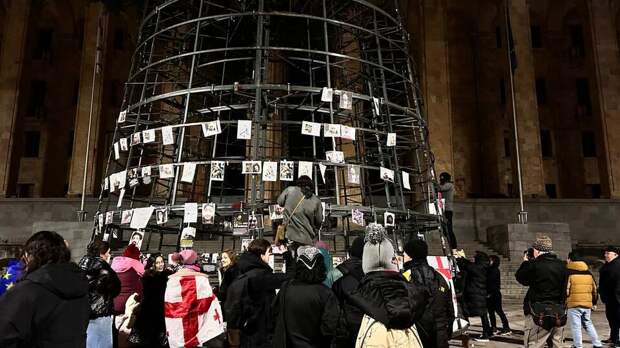 Мэрия Тбилиси начала установку большой новогодней ели у парламента, где на митинги собирается оппозиция.