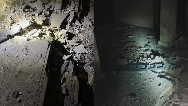 Twitter Ударной волной выбило и входную дверь. Осколки можно заметить и внутри резиденции. Стены здания остались целы, удар лишь разрушил ступени возле дома.