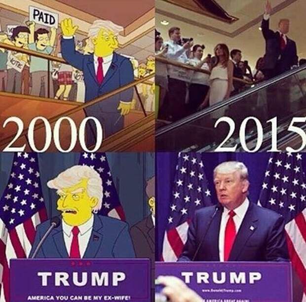 Так, некоторые отметили, что в популярном мультфильме "Симпсоны" победа Трампа уже была предсказана, причем 16 лет назад.