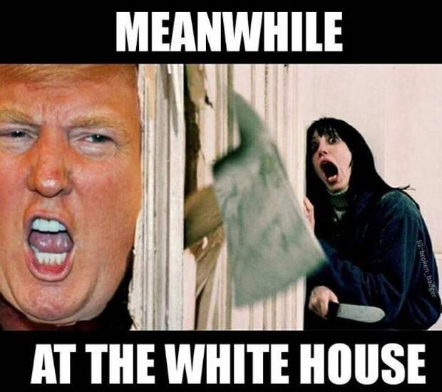 Также пользователи отметили, насколько неожиданной была победа миллиардера, изобразив его в образе главного героя из фильма "Сияние" режиссера Стэнли Кубрика.