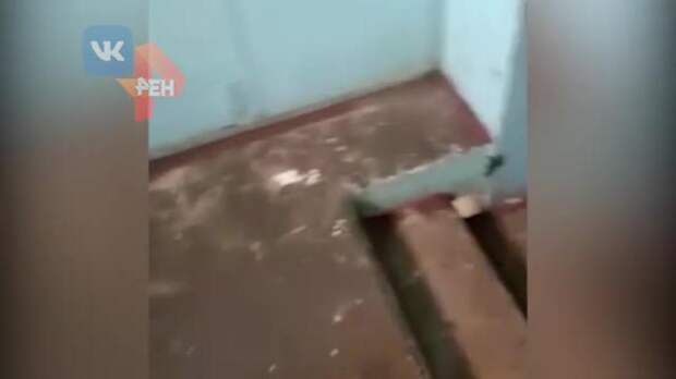 В кадрах видно, что вода стекает по щитку и по стенам подъезда. Дождь не пощадил даже квартиры местных жителей - их также затопило.