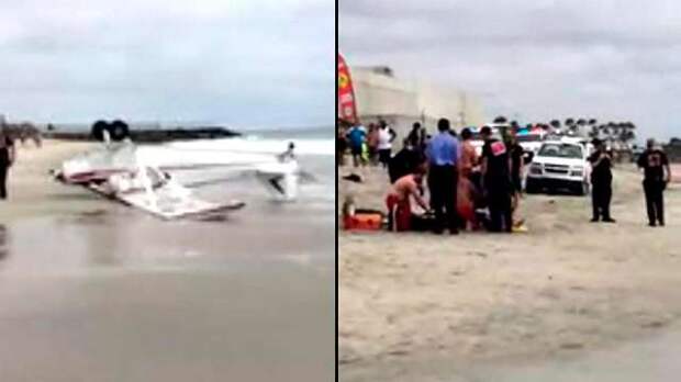 Легкомоторный самолет разбился, упав на переполненный пляж Калифорнии. В результате крушения пострадал маленький мальчик.