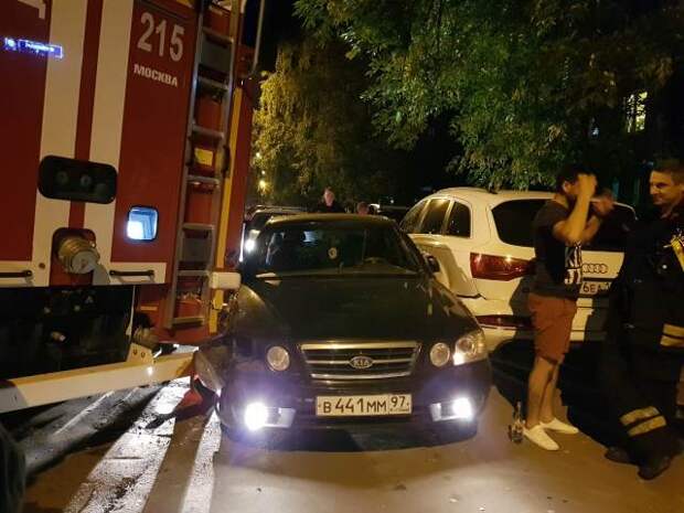 Очевидцы сообщили, что на Бирюлевской улице в Москве в припаркованный автомобиль МЧС, прибывший на вызов, врезался автомобиль.