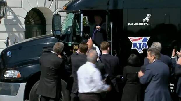 Президент США Дональд Трамп пришел в восторг от того, что ему удалось посидеть за рулем 18-колесного грузовика. Видео маленьких радостей хозяина Белого дома было опубликовано в YouTube на канале Mitchell Wiggs.