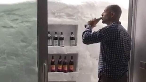 Житель Австрии решил воспользоваться положением и хранить пиво в сугробах. Видео опубликовано на сайте Reddit.
