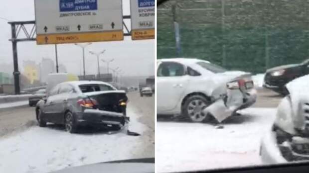 Из-за ночного снегопада в Москве возросло количество ДТП. Как сообщают очевидцы, утром на дорогах столицы образовались пробки и произошли целые серии аварий.