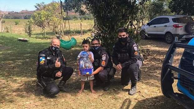 Местная полиция наградила маленького спасителя человеческой жизни подарком.