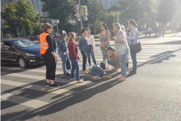 В Санкт-Петербурге автомобиль сбил пешехода практически на пешеходном переходе.