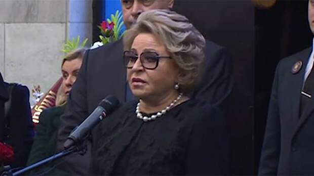 Спикер Совета Федерации Валентина Матвиенко выступила на прощании с вице-спикером верхней палаты парламента Евгением Бушминым.