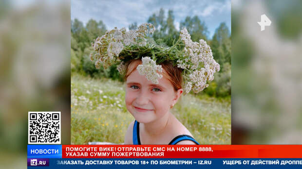 Вика терпит стойко, даже успевает делать своими руками маленькие сувениры медсестрам. Совершить новогоднее чудо и сделать Вике самый важный подарок в ее жизни можем мы с вами. Подробности – в сюжете корреспондента РЕН ТВ Александра Надсадного.Ангельский взгляд с хитринкой, в волосах – цветочная корона. Лето –любимая пора, особенно когда тебе 11, и ты вместе со старшей сестрой у дедушки в деревне на берегу сибирской реки. Но школьные каникулы для Вики из Ангарска оказались совсем не солнечными.
