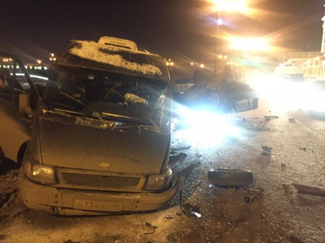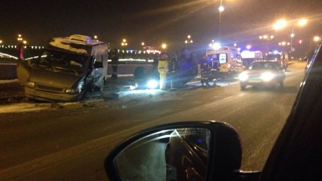 По его данным, у автомобиля Land Rover Discovery лопнуло колесо, в результате чего иномарка заскочила на бордюр, а потом вылетела на встречную полосу и врезалась в Ford Transit, в котором находились двое полицейских.