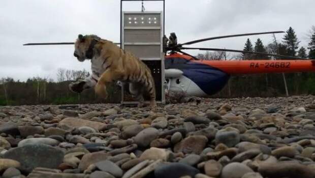 Тигра Владика, осенью разгуливавшего по улицам Владивостока, выпустили в дикую природу. На специальном вертолете он был доставлен в национальный парк "Бикин".